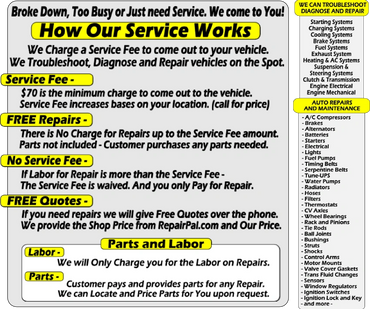 The Minimum Charge to Come out to Your Vehicle for Repairs.